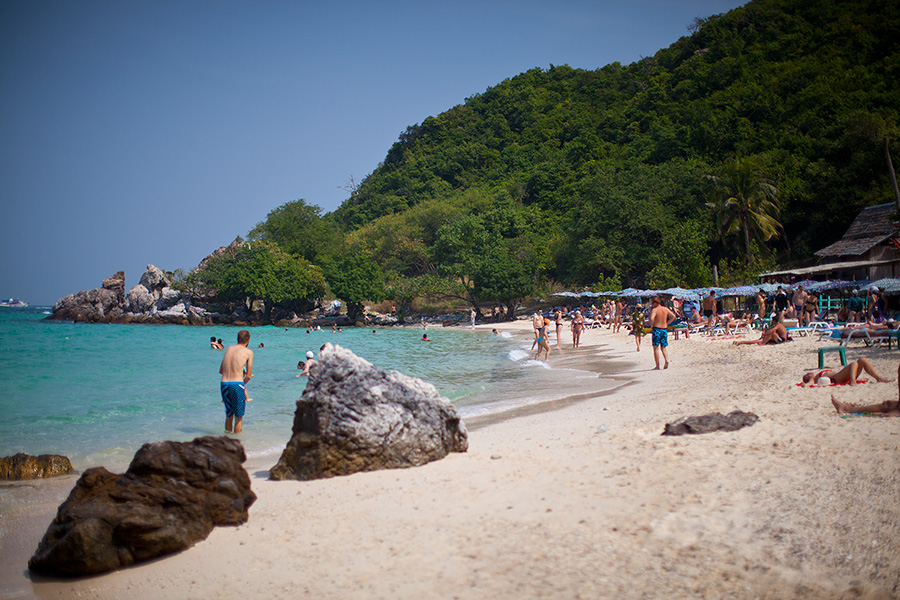На Ко Лане вода прозрачная и береговая линия мелкая — видно всех и вся. Тоже самое на военном пляже.