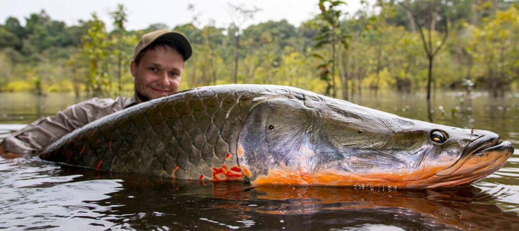 Гигантская арапайма – крупная рыба, которая по размерам немного уступает некоторым видам белуг.