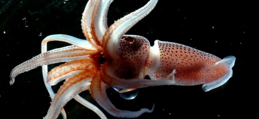 Осьминог Думбо – это мягкотелое или полустуденистое глубоководное животное, которое получило свое название благодаря двум плавникам, расположенным на мантии, на перепонке между лапами, напоминая слоновьи уши. Осьминог может всплыть прямо с поверхности дна и как бы парить над морским дном, выглядывая улиток, червей или другую добычу.
