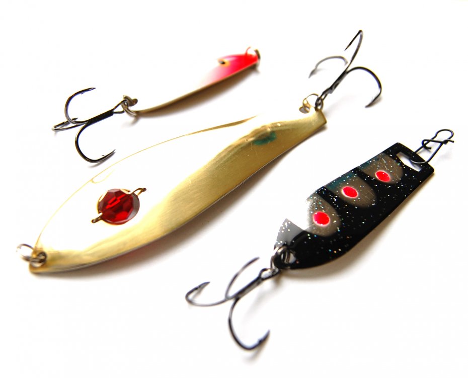 Повторим, что данные изделия бывают штампованными, коваными или отлитыми, для их производства чаще всего используют медь и ее сплавы, а также сталь, свинец, пластмассу. Среди спортсменов-блеснильщиков популярны серебряные приманки для ловли со льда, достаточно часто встречаются и мельхиоровые модели. Некоторые так называемые юбилейные «колебалки» покрывают сусальным золотом, хотя чаще, конечно, с этой целью используют нитрид титана.