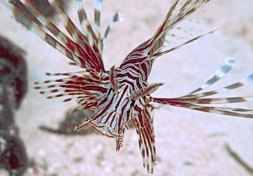 Lionfish умеет охотиться и на открытой водной глади. Она поджидает мелких рыб у самой поверхности. Они устремляются из глубины, спасаясь от хищников, а когда возвращаются, оказывают в пасти крылатки.