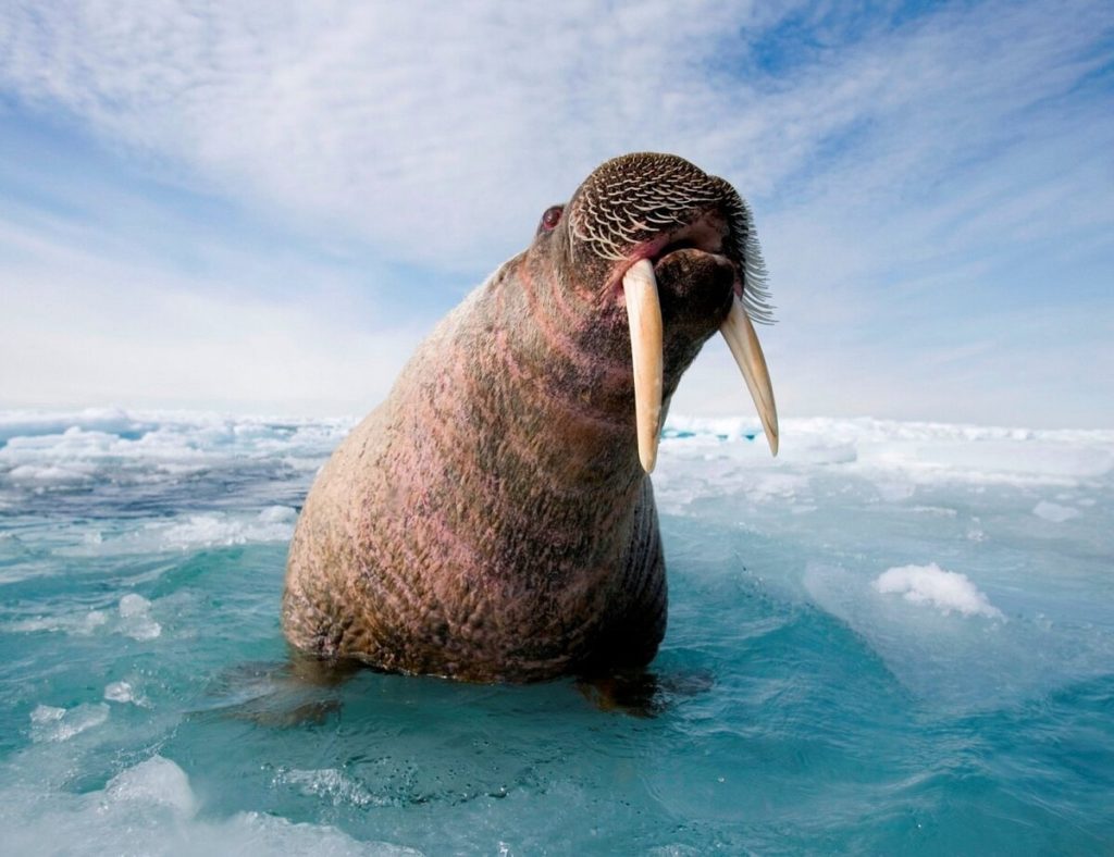 - С помощью бивней моржи могут пробивать лед, чтобы выбраться на поверхность или обновить лунку для погружения.