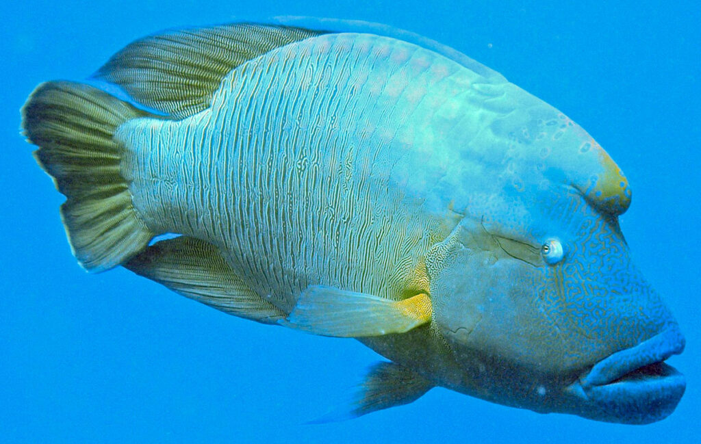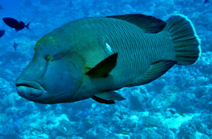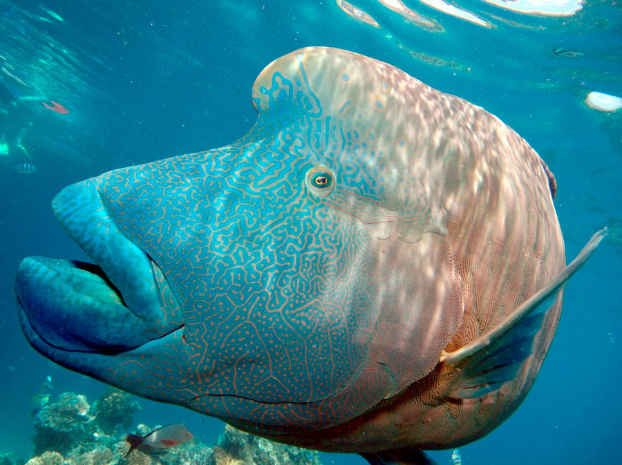 Вырост на голове и огромные губы, которые занимают почти треть всей головы, делают рыбу узнаваемой среди всей живности, кишащей в коралловых рифах.
