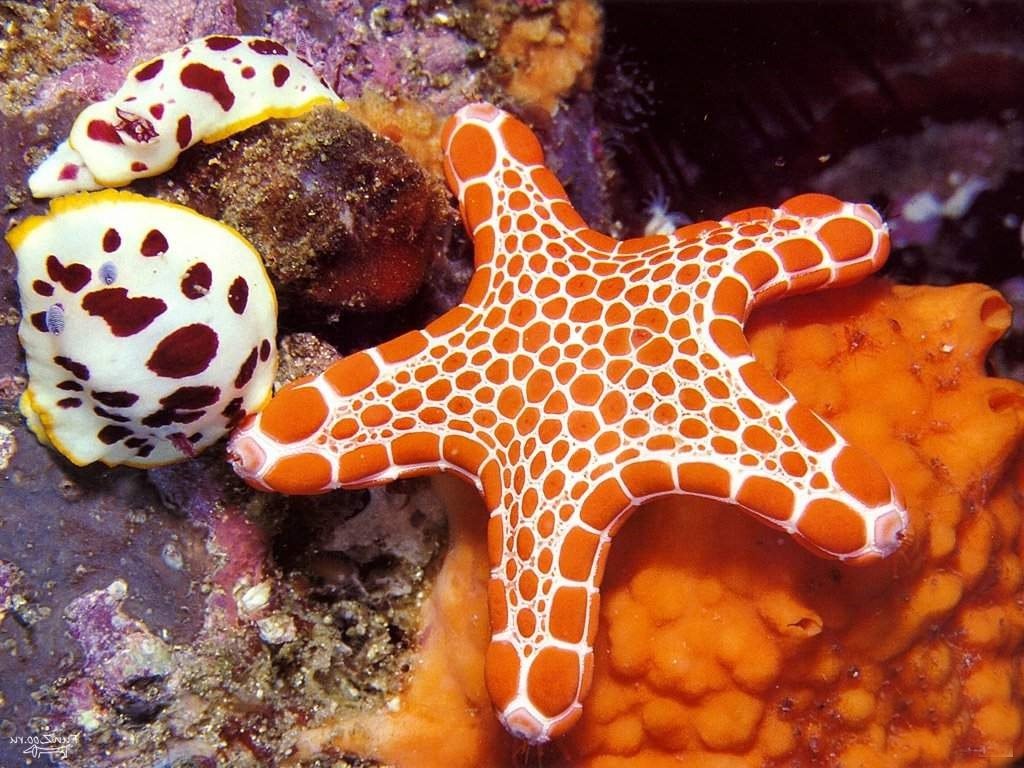 У морской звезды может быть до пятидесяти «лучей» — отростков, на которых располагаются глаза. Эти глаза способны различать свет. Морские звезды обычно ярко окрашены, и их цветовая гамма довольно обширна. Можно сказать, что они бывают всех цветов радуги!