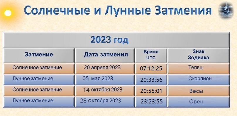 Даты солнечных и лунных затмений в 2023 году
