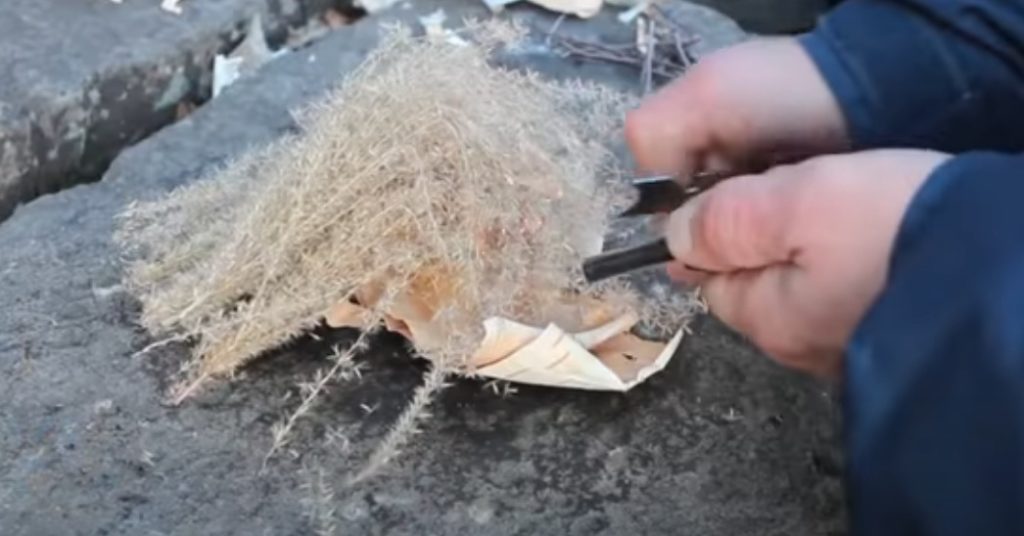 - Герметичного контейнера с небольшим светодиодным фонариком, 15-метровым мотком нихромовой проволоки, газовой зажигалкой, ватой.