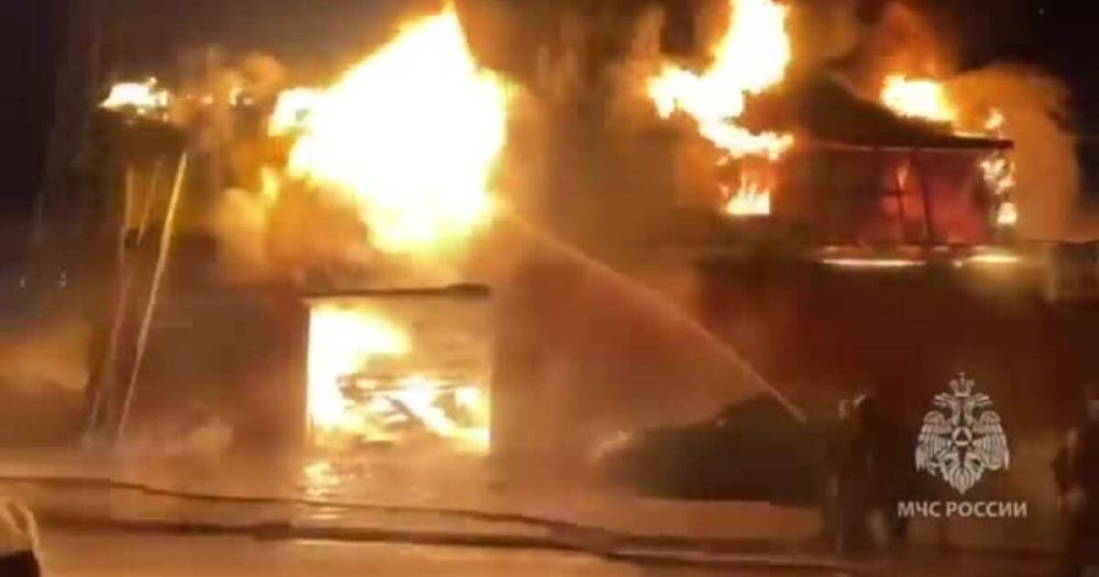 Автосервис горит в Ижевске на площади 600 квадратных метров