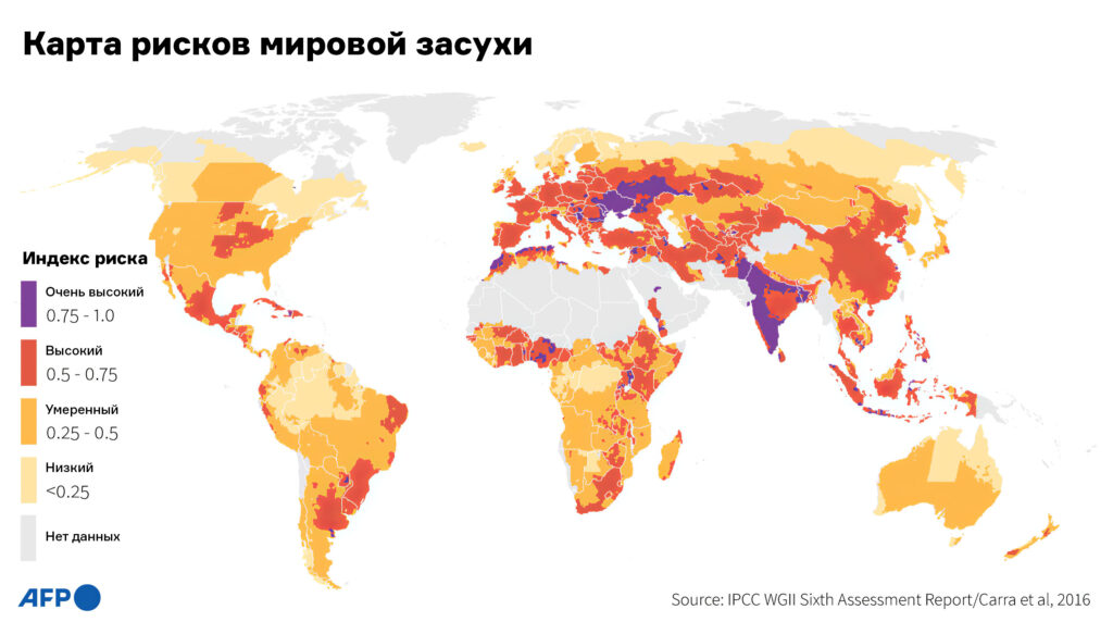 Молдова, Украина, Бангладеш, Индия, Сербия. Ученые собрали данные 138 стран и составили отчет по рискам засухи в мире. Они учли такие показатели: