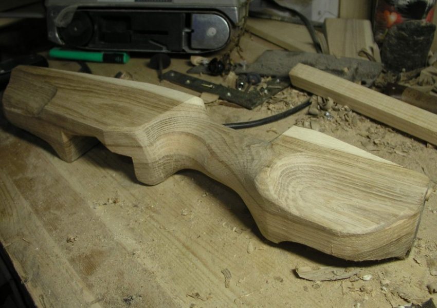 Просушенную основу с помощью острого ножа или топорика очищаем от коры и рубанком обтесываем излишки древесины. Лук должен получиться толщиной около 3 см. В центральной части наметьте рукоять и сделайте углубление для стрелы.