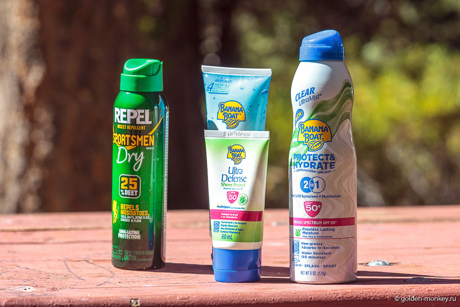 Пользовались кремами Banana Boat, привезенными еще из Мексики, потом докупили в Штатах одноименный спрей за 8 баксов. Кстати, хорошо защищает от солнца и приятен в использовании.