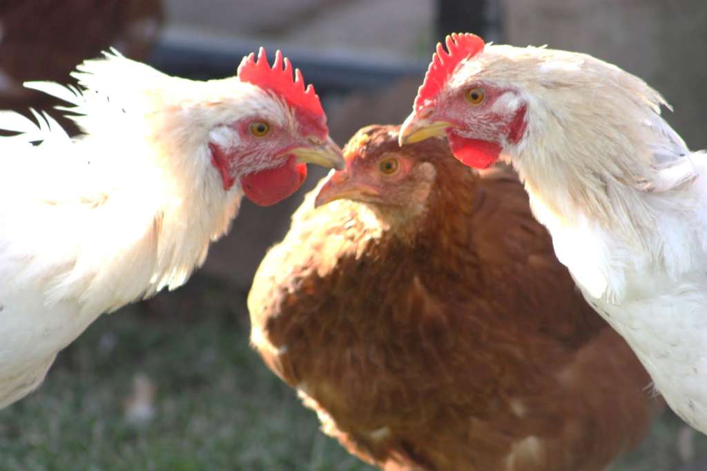 Куры ведут постоянную борьбу за корм и социальное положение в обществе. Даже если еды много, сильные птицы выбирают лучшее, отгоняя слабых.