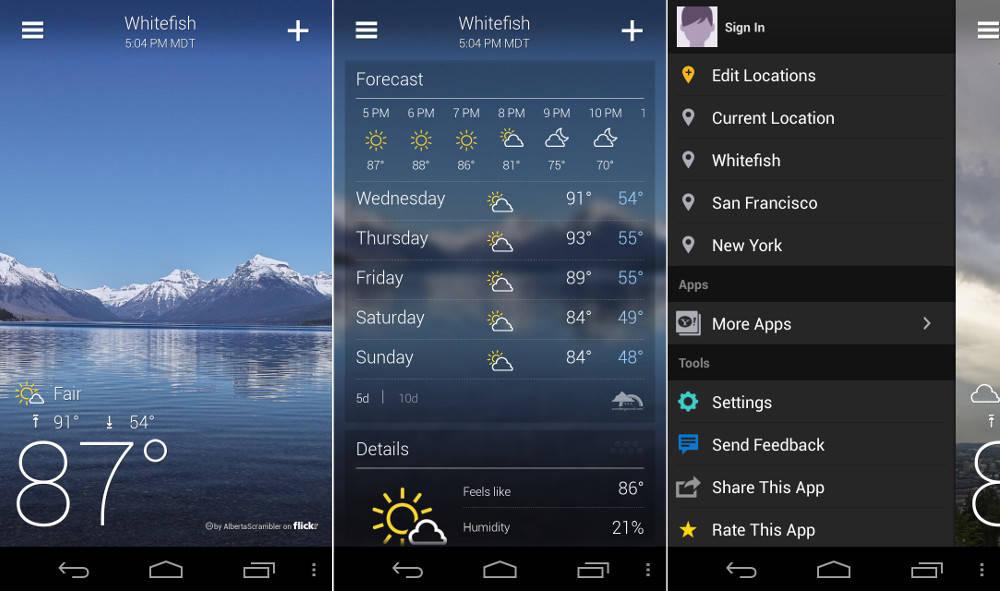 - Слишком сфокусирован на дизайне вместо данных. Yahoo Weather на первый взгляд и в целом отображает меньше информации, чем другие приложения. Параметры спутника и варианты осадков особенно примитивны. Хотя немало пользователей предпочли программу именно из-за минимал-дизайна.