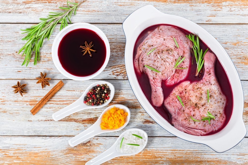 Как правило, маринад состоит из масла, кислоты и приправ. Их выбор зависит от вида мяса и личного вкуса.