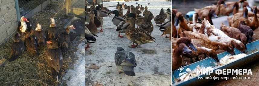 Несмотря на то, что утки относятся к чрезвычайно жизнестойким и выносливым птицам, содержать их исключительно на улице зимой нельзя. Дело в том, что на лапах птиц отсутствует жировая прослойка, а кровеносные сосуды присутствуют в избытке. Соответственно, именно лапы будут самым уязвимым местом на теле особи. Таким образом, большую часть времени поголовье будет проводить в теплом сарае, а не на свободном выгуле на улице (рисунок 5).