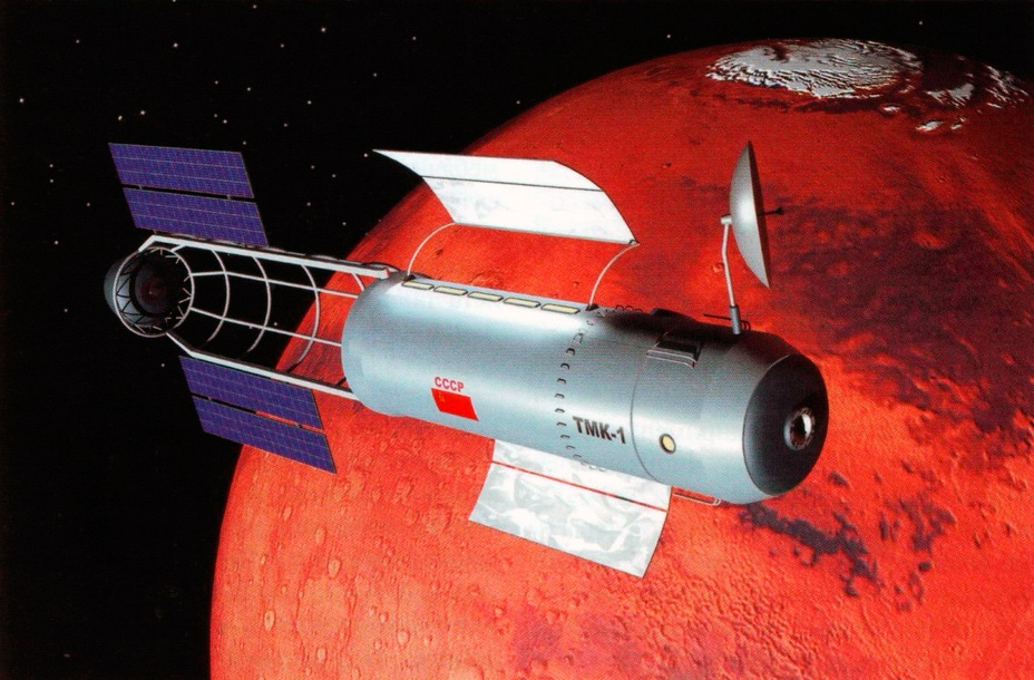 Советский тяжелый межпланетный корабль на орбите Марса, в представлении художника