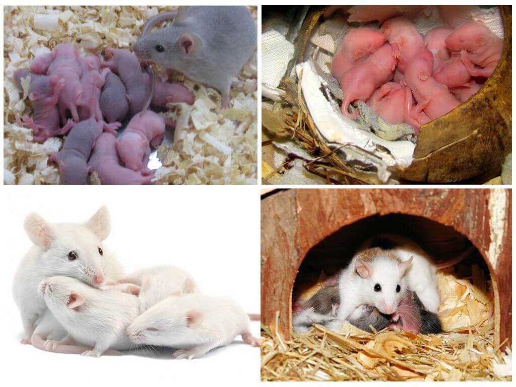 Как рождаются мыши, увидеть удается мало кому, поскольку процесс происходит ночью. Длится около 2 часов. Перед родами необходимо почистить клетку, продезинфицировать, положить свежее сено.