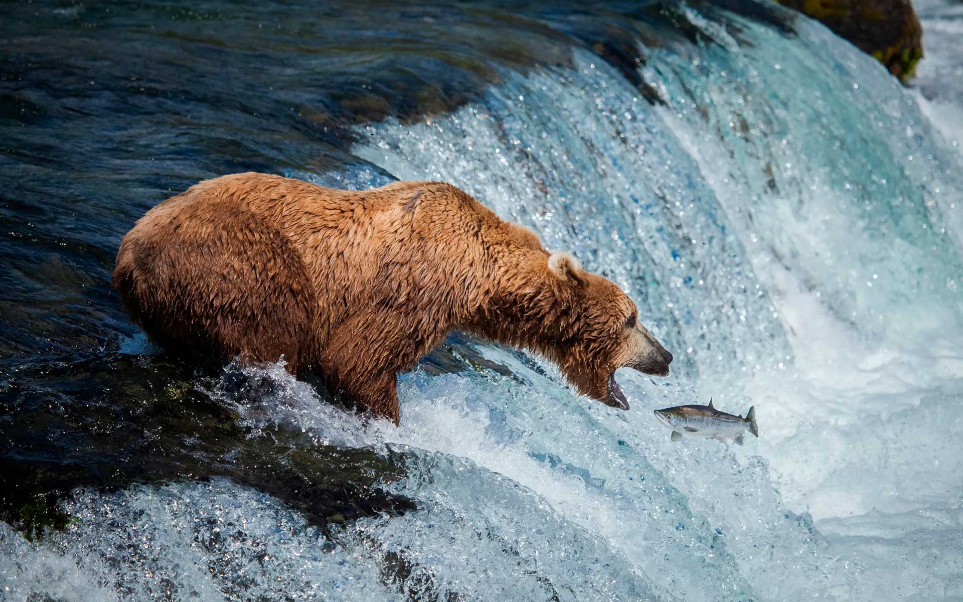 Не редки случаи, когда бурые медведи предпочитают отнимать добычу других хищников. Добычу они отнимают у тигра, пумы и волков. Бурые медведи едят падаль. Не для кого ни секрет, что они любят мед. Помимо животных бурые медведи едят и рыбу. В особенности в пищу идут лососи, которые движутся по рекам к местам нереста. Бурые медведи ловят лосося прямо в воде лапами и пастью. С помощью этой рыбы медведи легко нагуливают много жира перед зимовкой.