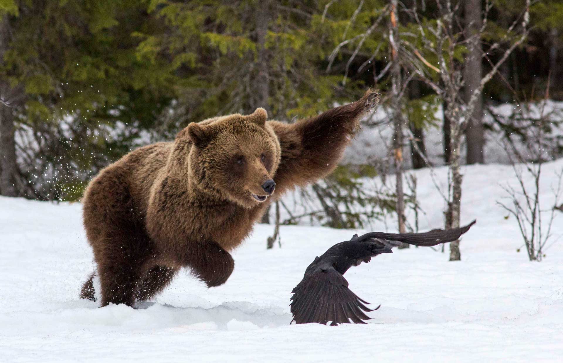 Иногда бурые медведи нападают на других крупных хищников. Например, на Дальнем Востоке бывают случаи нападений на тигров. В этом же регионе бурые медведи могут охотиться на гималайских медведей. А вот гризли часто нападают на волков и черных медведей.