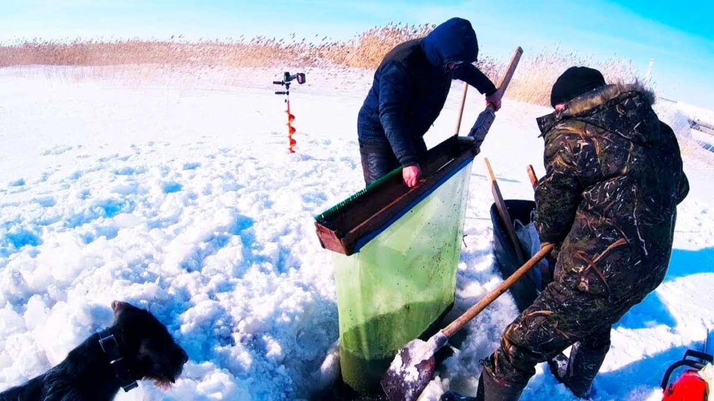 - Вместо скребка иногда используют такие рыболовные снасти как драга и «комбайн». Немного мормыша можно собрать и с нижней части вырезанного куска льда.