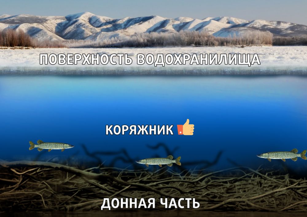 Во второй же половине зимы поклевки щуки здесь практически не происходили. Такое случалось не каждый год, а лишь в морозные суровые зимы при практически полном отсутствии оттепелей. Я считаю, это связано с тем, что даже при минимальных положительных значениях температуры воды, присущих зимнему периоду, в водной среде всё равно происходят процессы гниения и разложения. И под толстым слоем льда в коряжнике тем более гниют многочисленные древесные останки, в итоге здесь существенно уменьшается количество растворенного в воде кислорода.