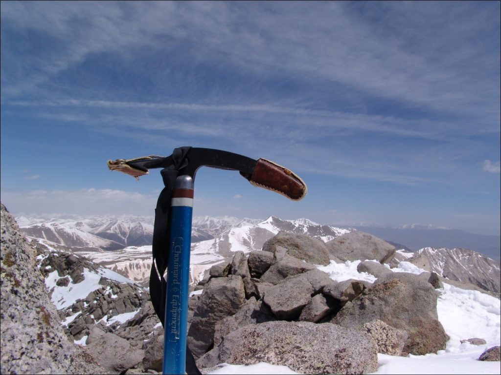 Инструмент для альпиниста внешне схожий с киркой, или топором называют ледорубом. Он выступает в качестве опоры при движении по льду и плотно слежавшемуся прошлогоднему снегу. Необходим для фиксации остального снаряжения, вырубки ступеней на пологих склонах, изучения ледяных и снежных поверхностей, а также используют в качестве страховки на льду и фирну.
