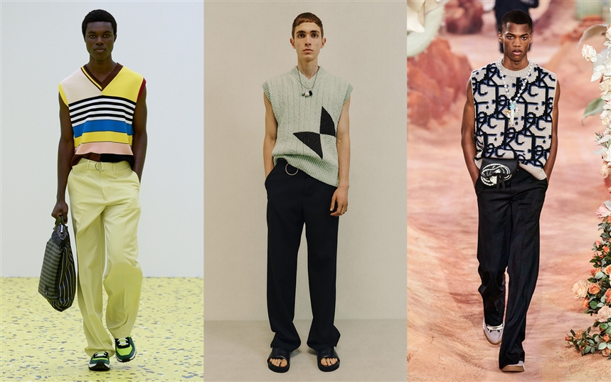 Любители минимализма будут в восторге. Больше никаких флуоресцентных нарядов! Мужчины в костюмах, кардиганах и брюках неброских фасонов снова в моде! Винтажный стиль входит в число мужских тенденций 2022 года. Можно носить такие вещи в варианте total look или с черным, как рекомендует Fendi.